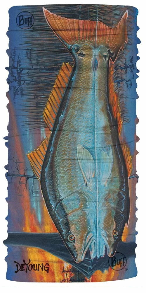 Take your very own Derek DeYoung fish graphic artwork on every adventure with the CoolNet UV+ Buff® Derek DeYoung Edition.