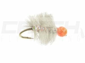 The Ray Charles Firebead entices trout feeding on freshwater shrimp and sowbugs.