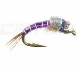 This purple flashy nymph is sure to command the attention of trout. The purple rainbow warrior can be used to imitate a midge (chironomid) or a mayfly emerger.