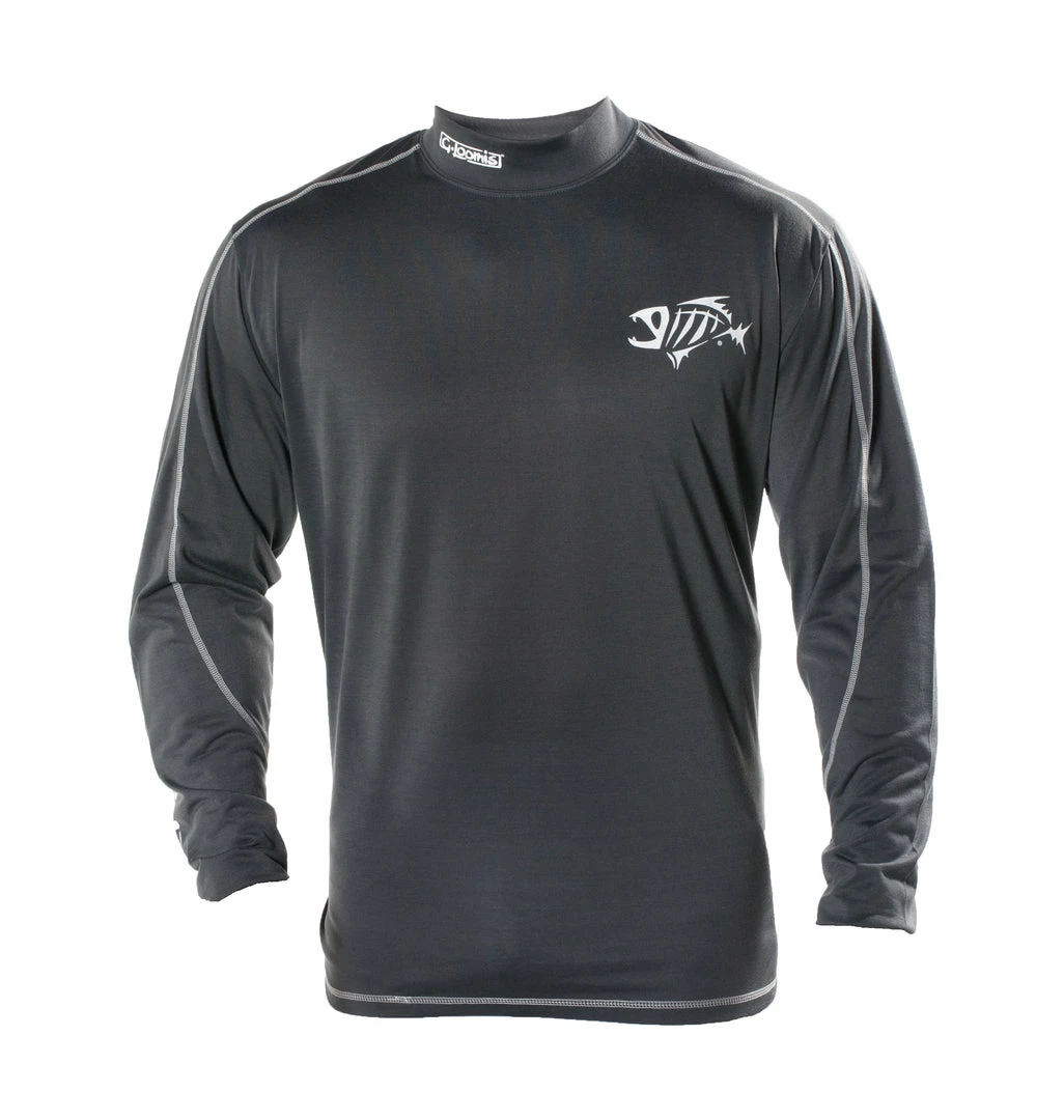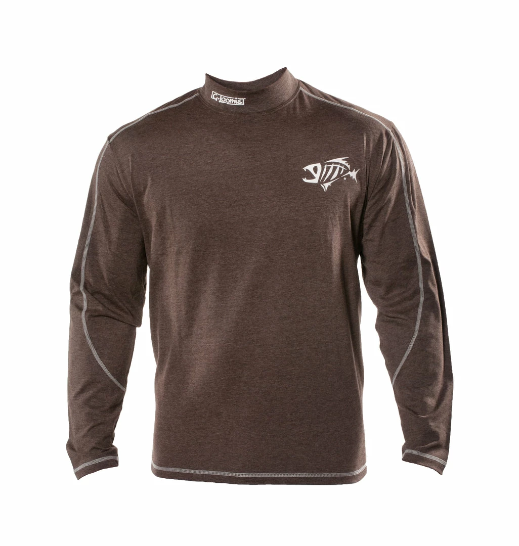The G-Loomis Modulus Mock Neck LS Tees are made with moisture wicking antimicrobial material. These long sleeve shirts feature a mock neck for warmth and added protection, contrast stitching details, and screened logos. The Modulus Mock Neck tee feels and wears like a regular cotton tee.