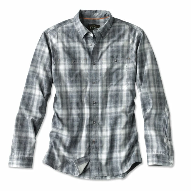 Clothing Orvis Men’S L/S Tech Chambray Plaid Work Shirt – Closeout