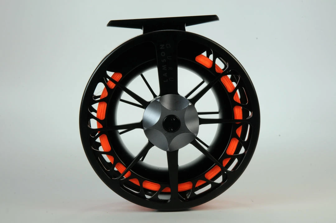 This signature arm-style element on the frame combines with open spokes to maximize structural strength and minimize weight. Fully U.S. CNC-machined, the Lamson Guru features true large arbor ratios. Guru shares identical drag design and components with their most expensive reels.