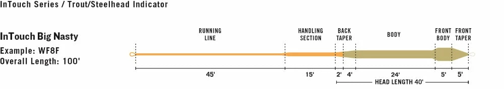 The InTouch Big Nasty, “which replaces the Powerfly Line”, Â is specifically designed with a short, powerful front taper to handle weighted streamers and big, wind-resistant terrestrials.