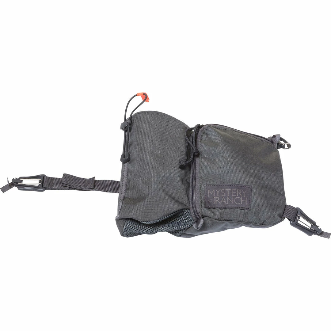 • Water bottle and zippered pocket that attaches to all MYSTERY RANCH shoulder pads and many non-MR packs