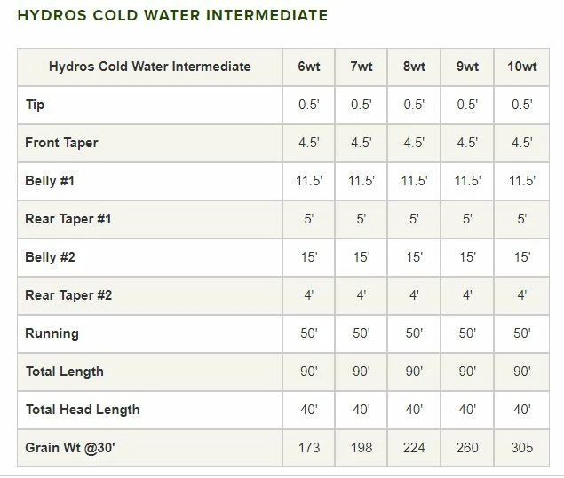 The slow-sinking Hydros Cold Water Intermediate line drops at 1.5 in. per second with no sag for direct connection to the fly. It’s ideal for getting below the waves and into the strike zone, swinging in slow tidal currents or getting under rough water in surf or windy conditions. This smooth coated line with AST patented dry-slick technology provides continual line protection and slickness. Dual welded loops for easy, seamless connection to backing and leader. Orvis Line ID for quick and easy identification. Camouflage color for less visual impact in clear water. 90′ total length.