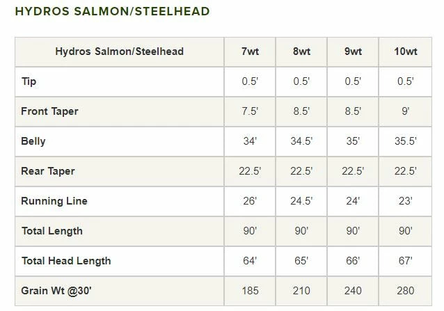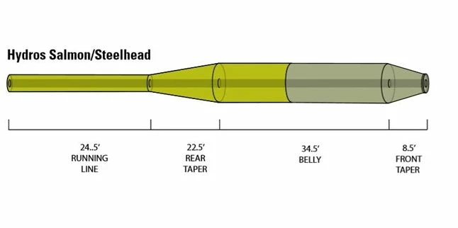 This Hydros fly line is designed for the demands of salmon and steelhead fishing. Ultra long head for enhanced line management. Head design helps turn over heavy flies and multi rigs. Run long drifts and mend with ease with this fly line. AST Slickness, a patented dry-slick technology, provides continual line slickness and easily sheds dirt, algae, and other parasitic drag particles to stay cleaner than traditional lines. Two-color line with color change 30′ from front tip of line. Dual welded loops for easy, seamless connection to backing and leader. Orvis Line ID for quick and easy line identification. Braided multifilament core for cold to moderate water temps. Light olive front. Moss rear. 45′ head. 90′ total length.