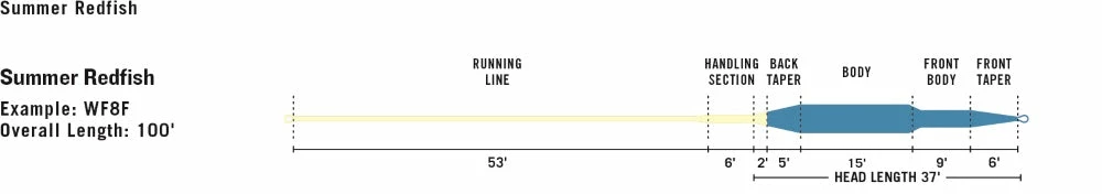 The Summer Redfish fly line targets redfish and speckled trout in warmer conditions. The line features a mid-length front taper that casts typical redfish