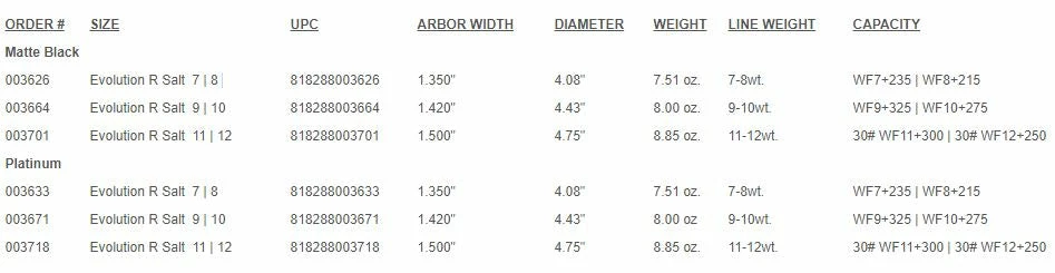 • 7wt – 12wt; Matte Black and Platinum