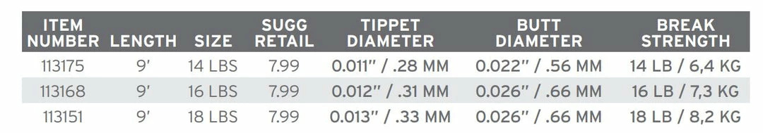 Features of the Bass Freshwater & Saltwater Tapered Leaders:
