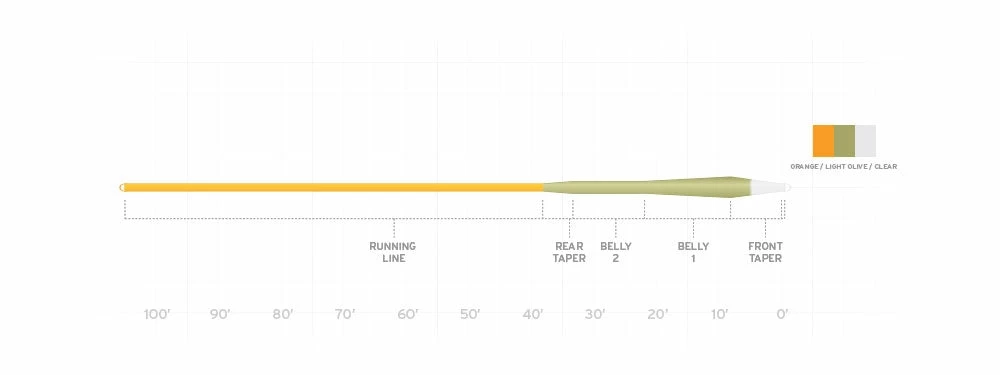 • 5-foot clear intermediate tip (1.25 ips) with floating running line and head for fishing flies just below the surface