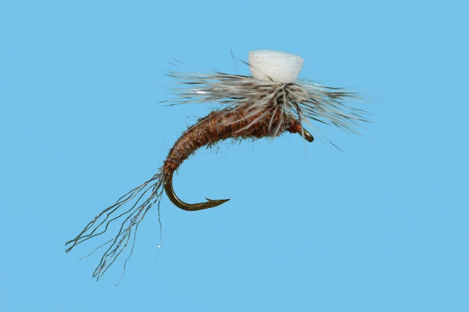 Brooks Sprout Callibaetis fly serves as an effective emerger pattern during common callibaetis hatches in stillwaters and slow streams. When fishing on the surface film the white foam post aides in visibility.