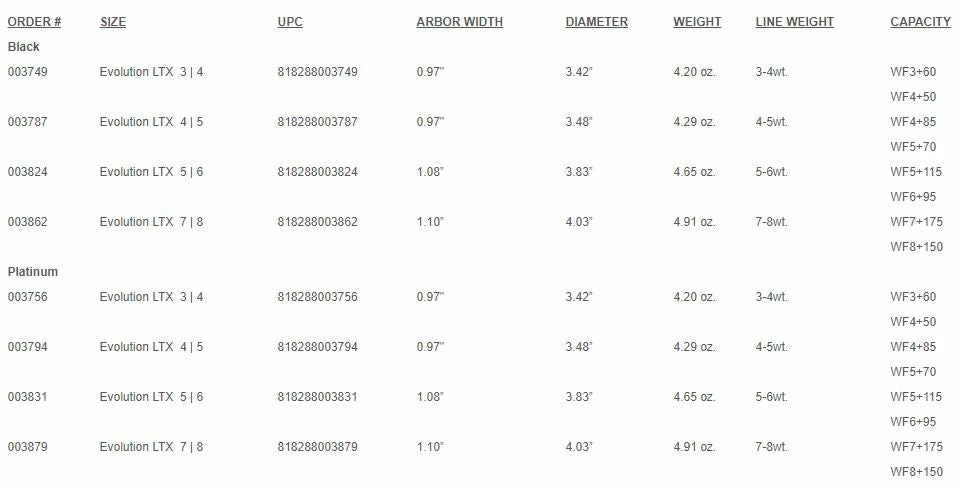 The Evolution LT has a long and revered history of ultra-smooth drag, so Ross engineers took this design to the next level. The drag of the LTX is now four times stronger than before, while retaining the sound and feel that helped make the Evolution an icon. The large arbor spool includes an innovative line channel for cleanly hiding arbor knots when winding on backing. The Ross Reels signature bell-shaped arbor design also adds strength, while assisting to self-level the fly line across the face of the spool as it is retrieved.