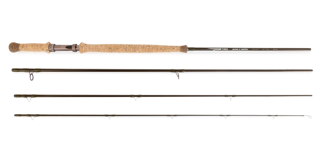 The Axiom II Switch is engineered for two-handed anglers providing optimal performance across a range of fishing techniques from a single rod. Now it’s possible to optimize a two-hand rod for all three techniques: “swinging flies,” “indicator fishing,” and “throwing lead”. TFO combined their highest modulus materials and proprietary Kevlar application with actions inspired by the industry-leading Deer Creek series. Axiom II breaks the code delivering the large grain windows necessary for a truly exceptional multi-technique two-handed rod. The Axiom Switch rod provides the caster the ability to achieve maximum targeted forward distance with the least amount of expended energy, while maintaining a functional rod length for line management and fish fighting.